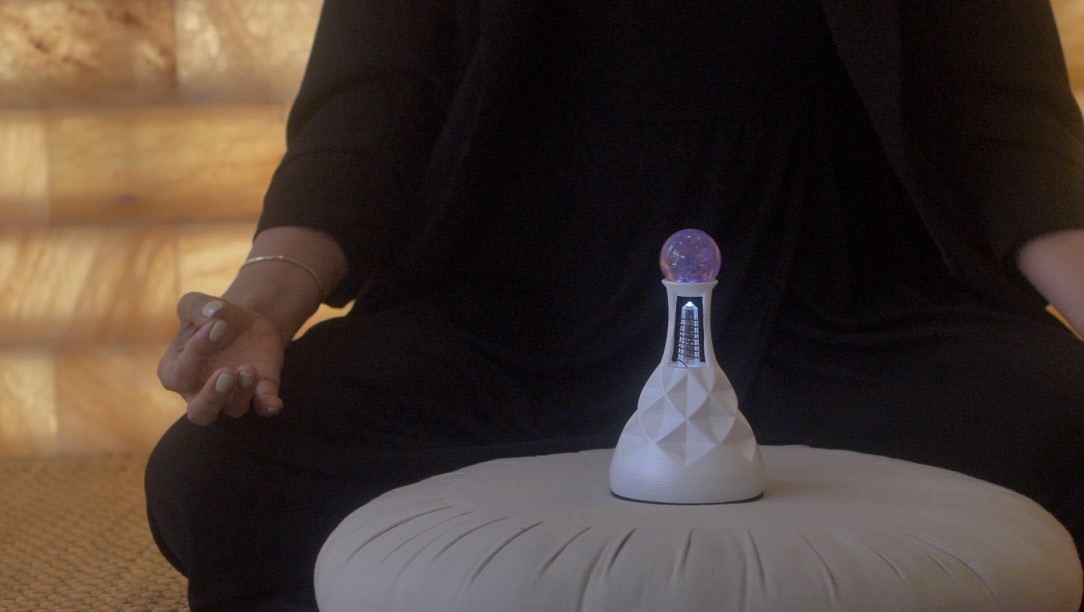 The Living Crystal is a powered meditation device that amplifies the metaphysical properties of any crystal you place on top of it.